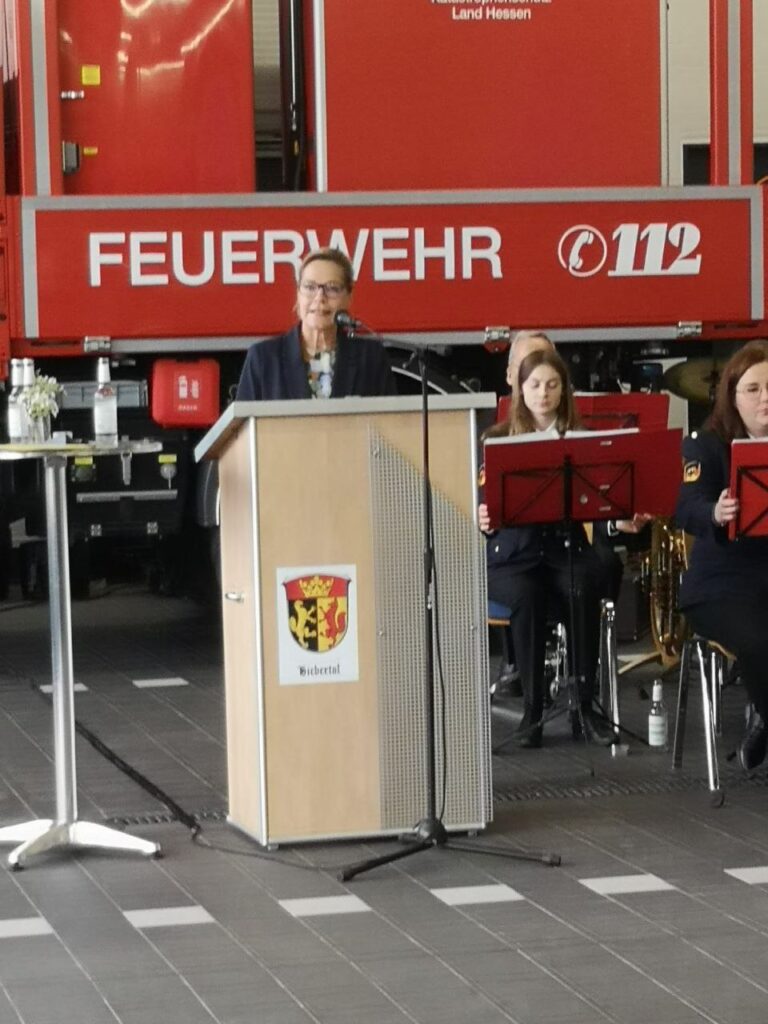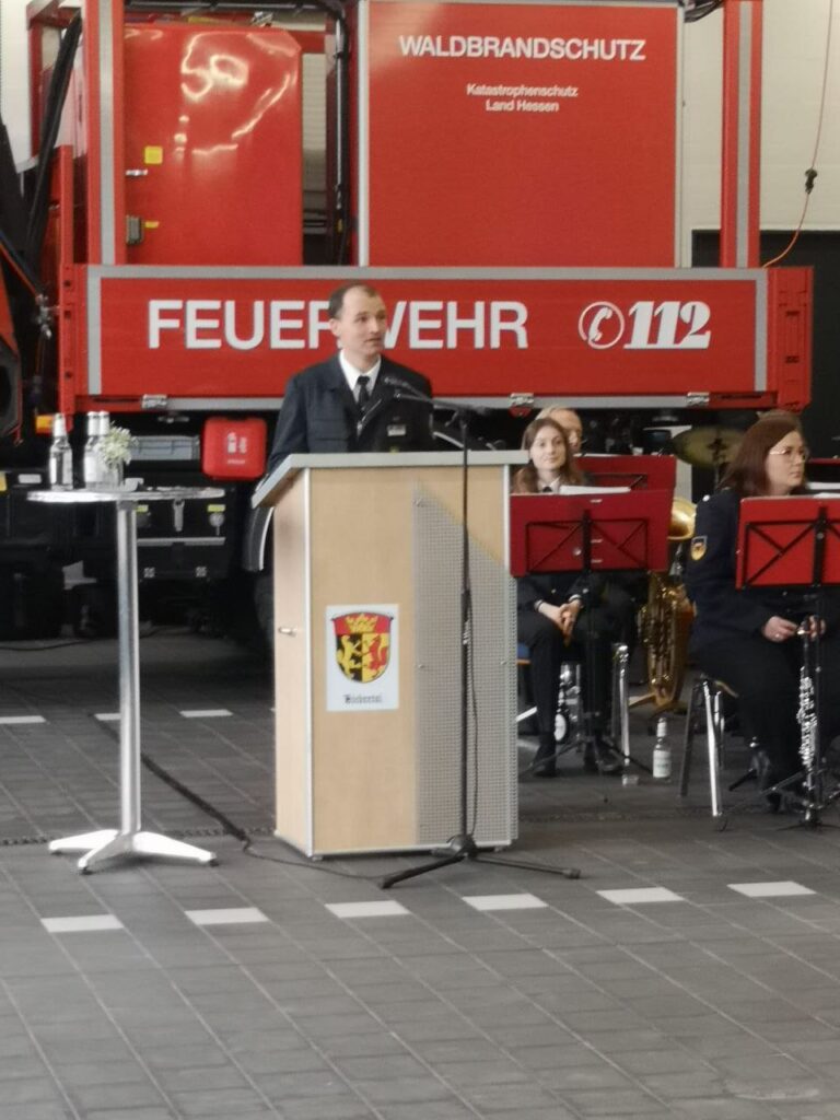 Dennoch konnten am 30. August 2025 die Ortsteilfeuerwehren Vetzberg, Rodheim, Bieber und Fellingshausen in den neuen Stützpunkt einziehen, in dem nun 70 Feuerwehrleute der Einsatzabteilung ihren Dienst tun. Dafür bedankte sich unsere Bürgermeisterin stellvertretend bei den Aktiven und Unterstützern, den Kinder- und Jugendfeuerwehr mit mehr als 100 Mitgliedern, die die Zukunft für die Einsatzabteilung seien. Marcel Hänsel sah das Haus als ein Symbol für Zusammenhalt, Vertrauen und gemeinsame Stärke: „Ein Dach, vier Wurzeln, eine Feuerwehr“. Unter seiner Führung stehen jetzt 8 belegte Fahrzeughallen, 130 Spinde für die Einsatzkräfte sowie 40 für die Jugendfeuerwehr, 58 Stellplätze für die Einsatzkräfte sowie Schulungs- und Bereitschaftsräume.