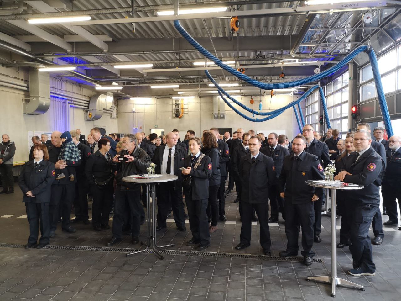 Neben dem Innenminister und seiner Entourage aus Personenschützern und hiesigem Polizeiaufgebort waren neben der Bürgermeisterin ca. 150 Kommunalpolitiker und die Einsatzgruppen der Feuerwehr zum Festakt mit Schleifchen durchschneiden gekommen.
