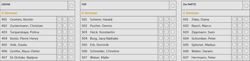 Um sich vorher ein Bild zu machen, ist es ratsam, sich die Listen schon zu Hause anzugucken. Wenn Sie sagen, „ich wähle nur die Partei x“, dann können Sie die Partei 1x ankreuzen.