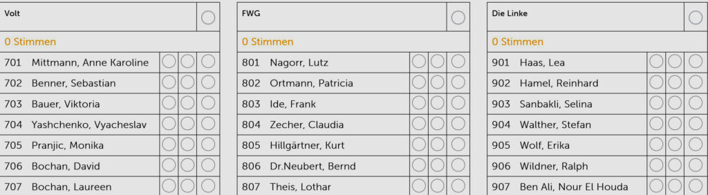 In den folgenden Screenshots sind jeweils die ersten sieben KandidatInnen aufgeführt. Wer die ganze Liste einsehen möchte, kann dies unter folgendem Link tun: https://www.lkgi.de/Probestimmzettel